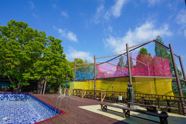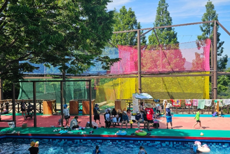 안성 최대규모 네트놀이터 아래 펼쳐지는 대규모 수영장!